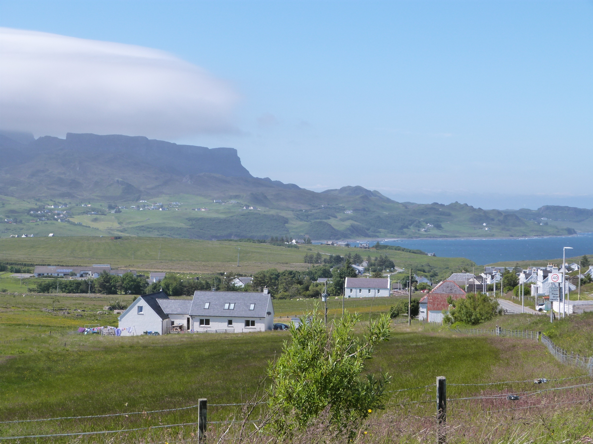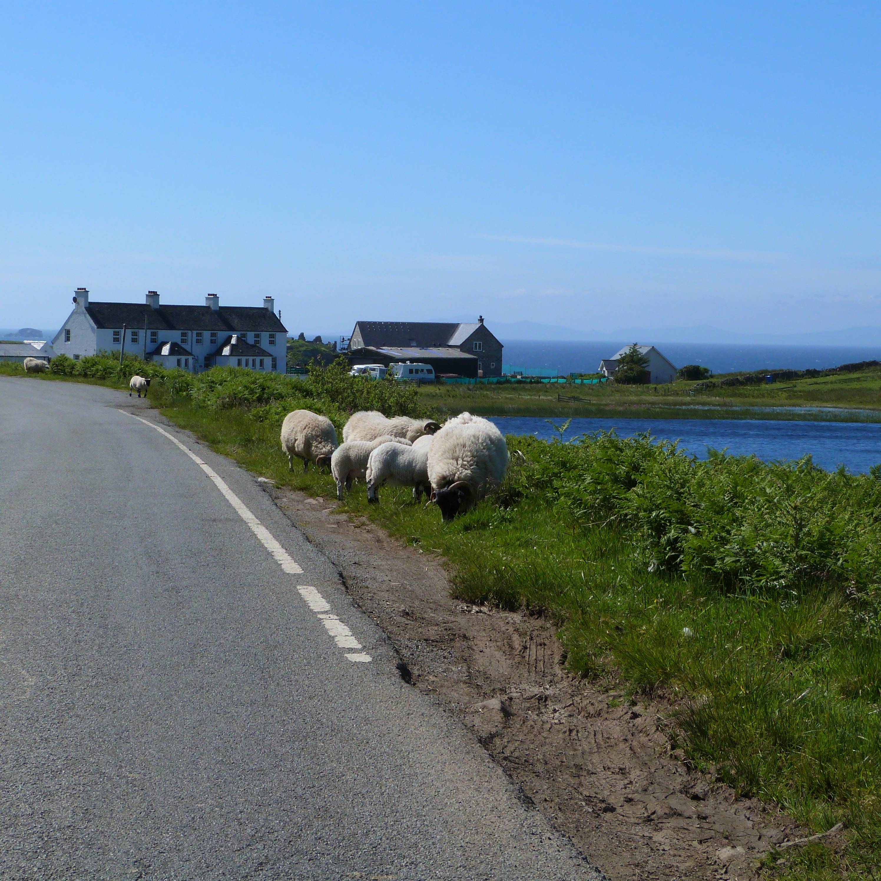 It has amazing mountains and valleys, with inlets seemingly around every corner. Crofters houses dot the landscape, tucked into the side of a hill or sitting right on the waters edge. The roads are often narrow, one lane with passing bays every 50 metres or so. Sheep are pretty common along the way, with no fences so you not only have to watch our for cars coming the other way, the sheep also pose a hazard. They also have deer apparently but we only saw a dead one! Sadly we drove past a car where a lady had obviously had one jump out at her – the whole front of her car was crushed and to the side of the road we saw the dead deer. Thankfully we didn’t even see a live one, let alone have to avoid one.